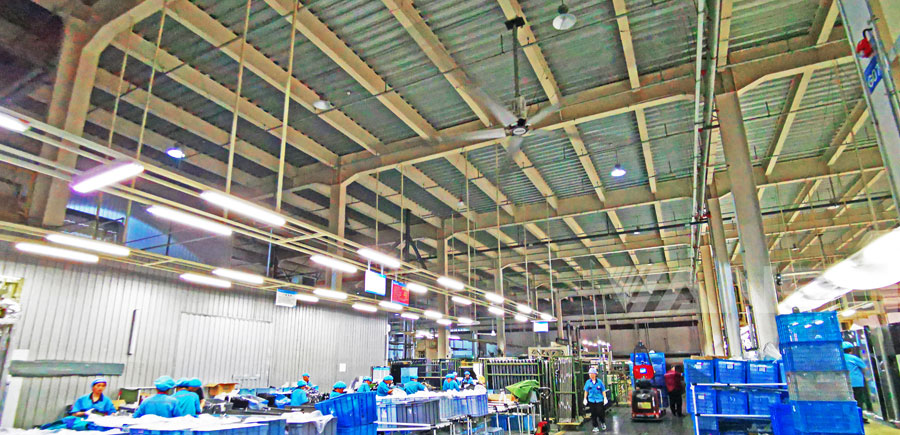 由于大型工業(yè)吊扇能夠如此有效地增加氣流,因此可以減少建筑物中所需的排氣扇和管道的數(shù)量。通過(guò)排出通常含有霉菌、化學(xué)物質(zhì)和其他污染物的污濁空氣,大型工業(yè)吊扇還有助于保持建筑物內(nèi)的良好空氣質(zhì)量。